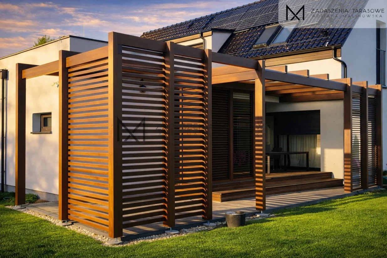 To rozwiązanie jest szczególnie ważne w przypadku nowoczesnych pergoli tarasowych o dużej powierzchni, które działają jak żagiel i generują znaczne obciążenia wiatrem.