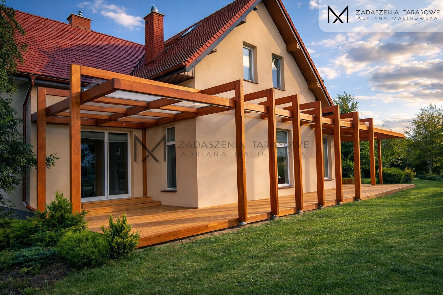 Jeżeli masz duży dom i zastanawiasz się, jak połączyć różne strefy tarasu w jedną spójną całość – to dokładnie taki kierunek projektowania daje najlepszy efekt. My takie konstrukcje projektujemy jako całość, a nie jako zestaw osobnych elementów.
