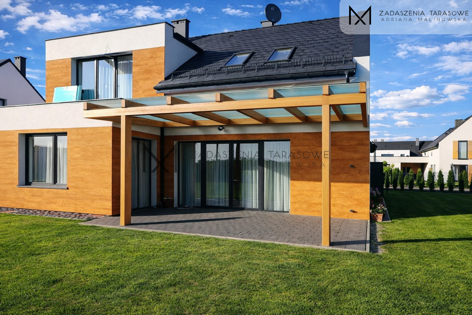 Lekkie zadaszenie na taras ze szklanym dachem drewniane