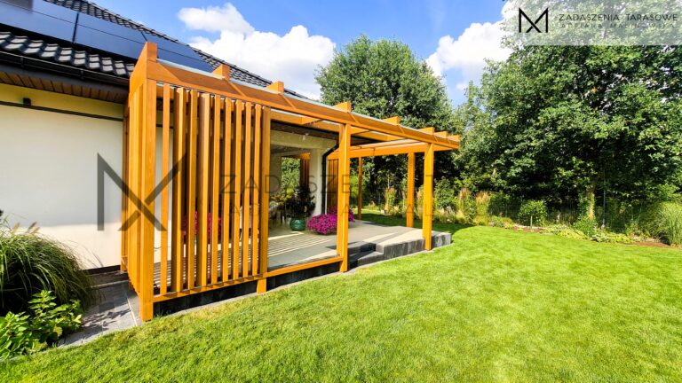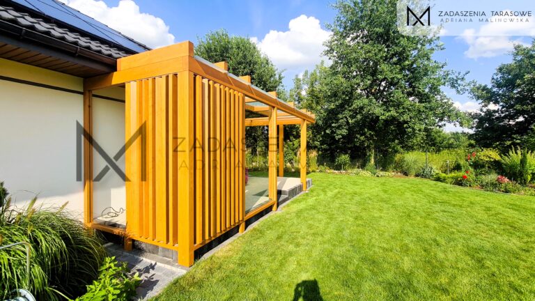 Wykorzystanie drewna klejonego BSH oraz hartowanego szkła zapewnia długowieczność i łatwość w utrzymaniu. Konstrukcja nie wymaga częstych zabiegów konserwacyjnych, co czyni ją wygodnym rozwiązaniem na lata. Lamele obrotowe dodatkowo zwiększają funkcjonalność, umożliwiając dostosowanie przestrzeni do zmieniających się warunków pogodowych.
