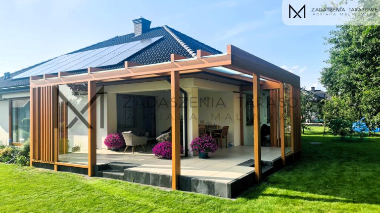 Zadaszenie na taras narożny to inwestycja, która zwiększa komfort i atrakcyjność przydomowej przestrzeni. Pozwala cieszyć się tarasem niezależnie od pogody, zapewniając ochronę i prywatność. Połączenie drewna i szkła nadaje konstrukcji nowoczesny, a jednocześnie naturalny charakter